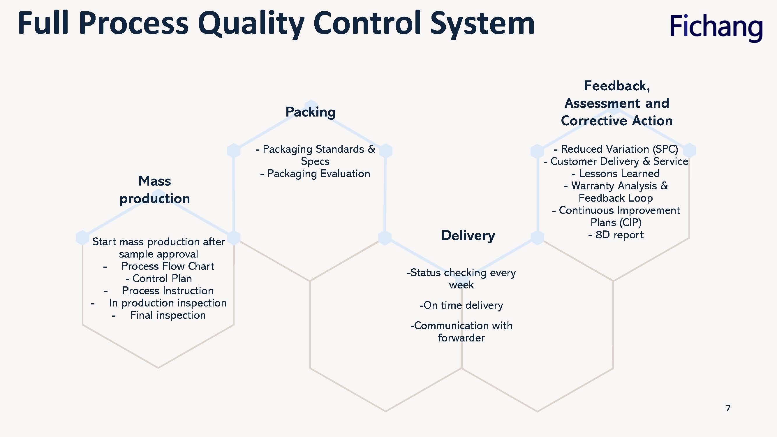 Timely reply, good teams in Fichang and very nice in communication. Excellent service with quality matching. Purchase manager of Bufab Group | Professional in both standard and customized items. With technical supports it’s helpful in my projects. Purchase Manager of Würth Group | Flexible capacity in volume. They can supply and also keep full attention even in very small orders. Good in process control, it's reliable. Buyer of Fabory Group |